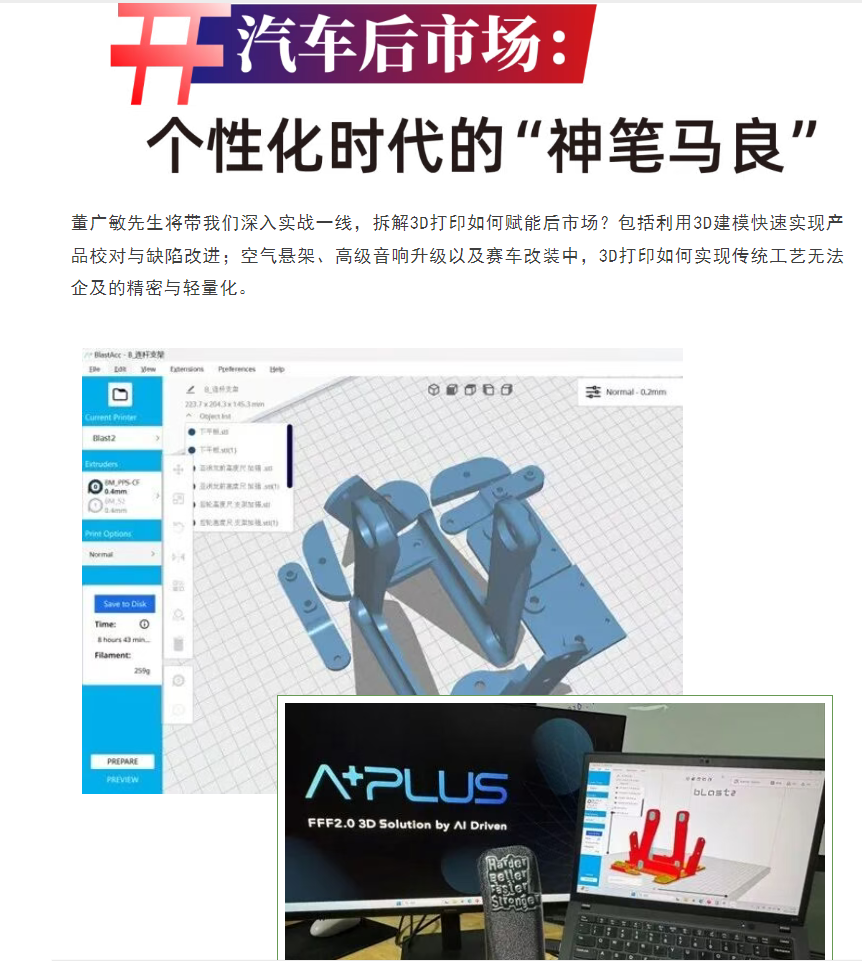 将带我们深入实战一线,拆解3D打印如何赋能后市场?包括利用3D建模快速实现产品校对与缺陷改进;空气悬架、高级音响升级以及赛车改装中,3D打印如何实现传统工艺无法企及的精密与轻量化
